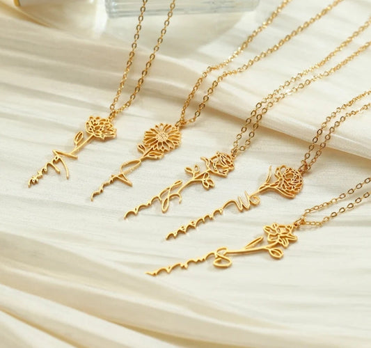 Customizable Name Titanium Steel Necklace with Birth Month Flower